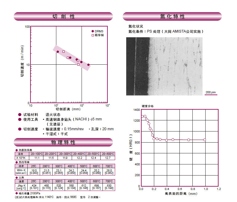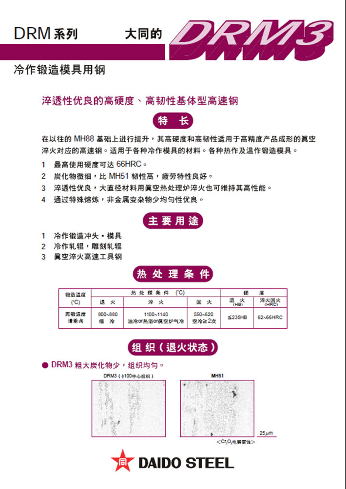 日本大同DRM3高速鋼:高硬度高韌性鋼,主要用于冷作鍛造。