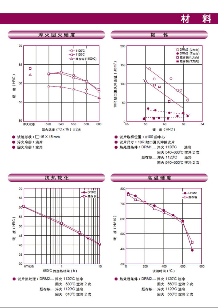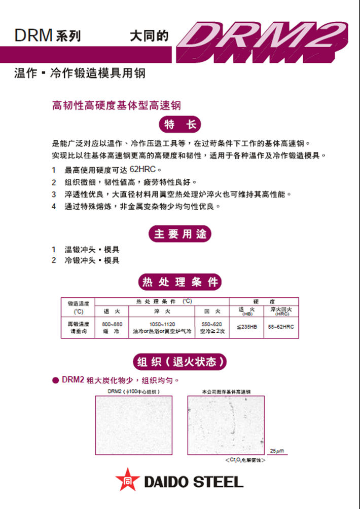 日本大同DRM2高速鋼:高硬度高韌性,主要用于溫作鍛造。